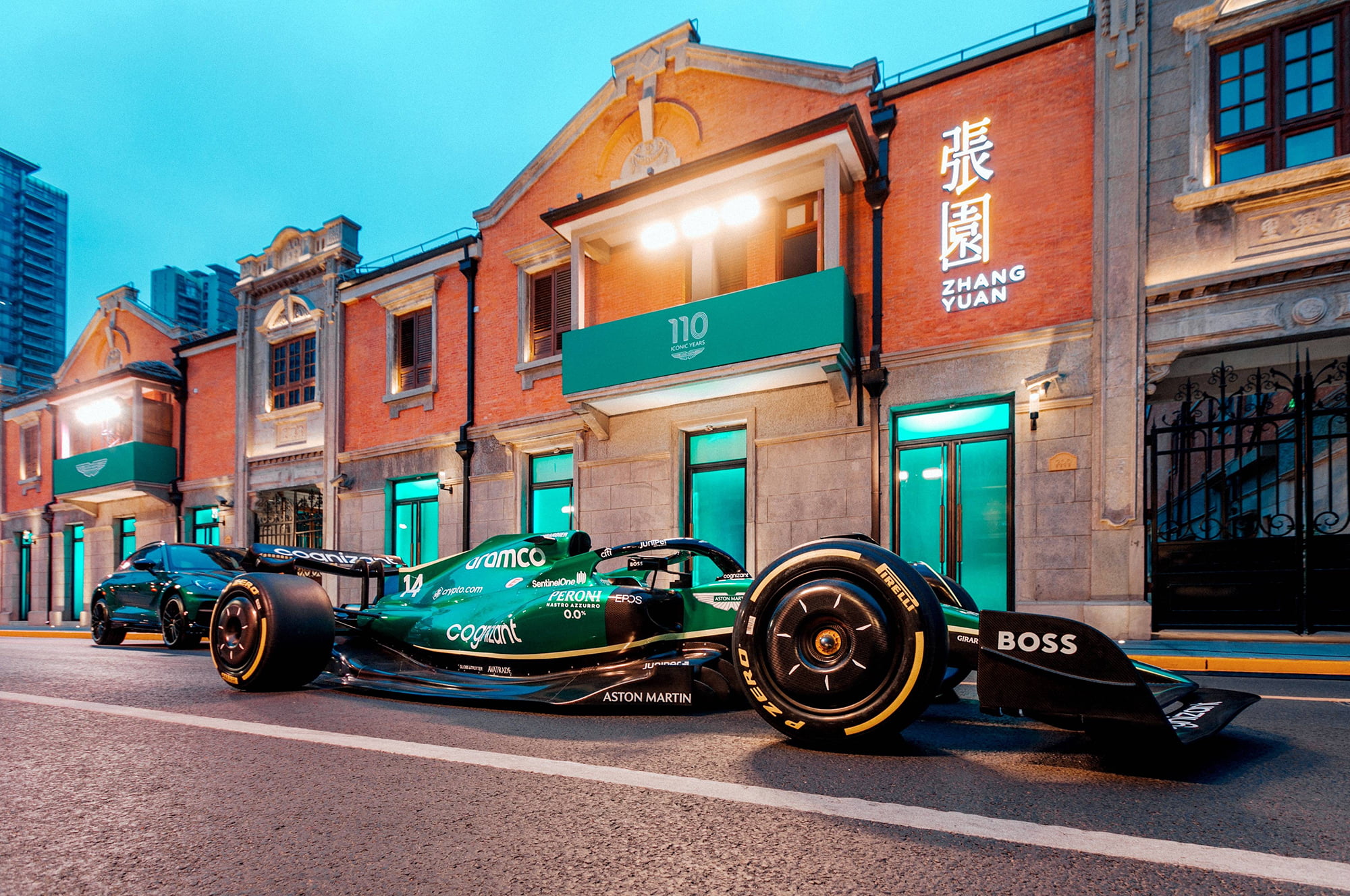 四月中旬的张园,城市秒变赛道,阿斯顿·马丁110周年庆典活动就降落在这一条限时限定的茂名北路之上,呈现了一场全新的品牌体验方式。百年名园与英伦风范交相辉映,开启了一场跨越时空的美学共鸣,展示出阿斯顿·马丁这一百年英伦品牌的赛道传奇与工艺传承。