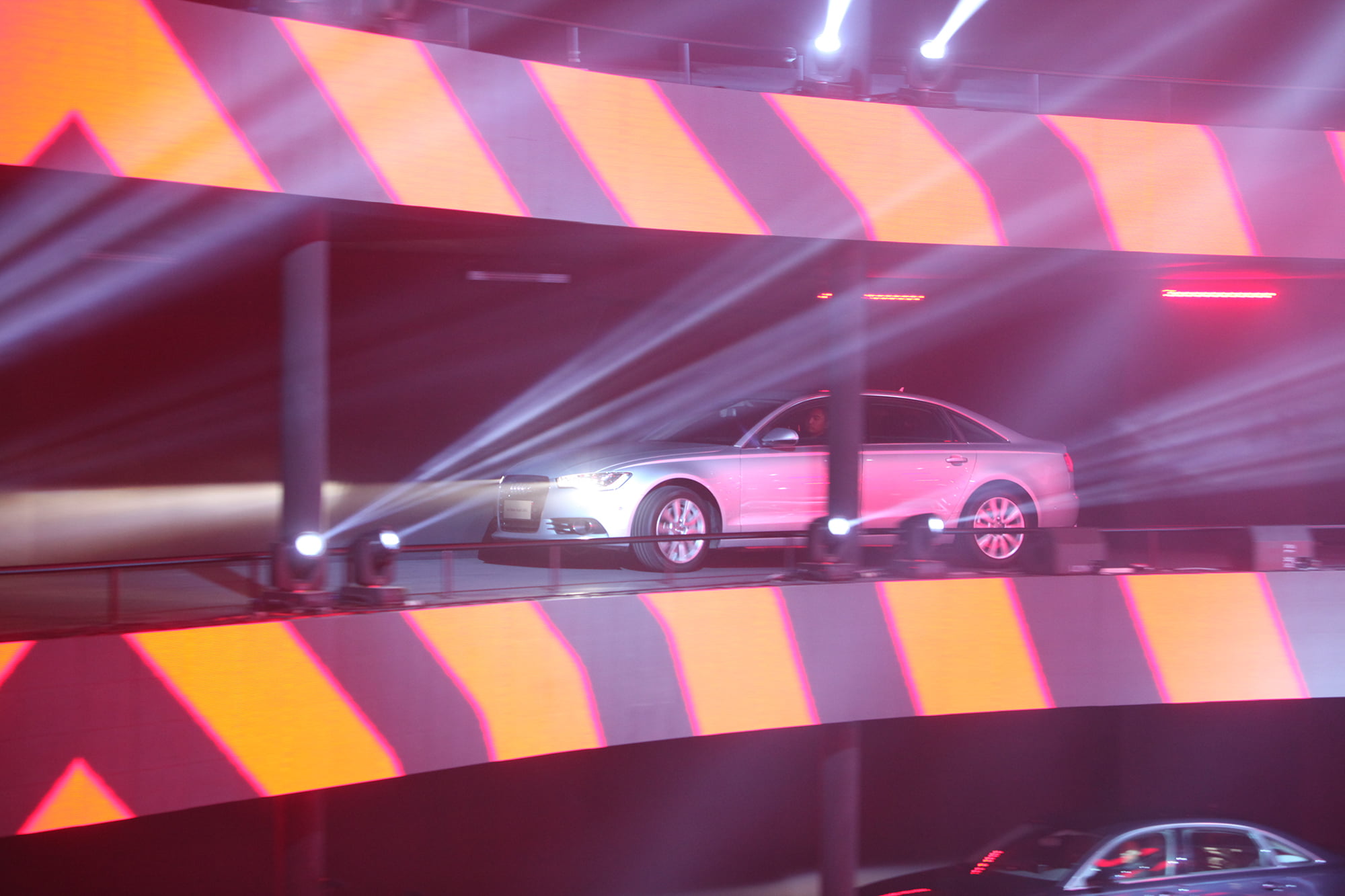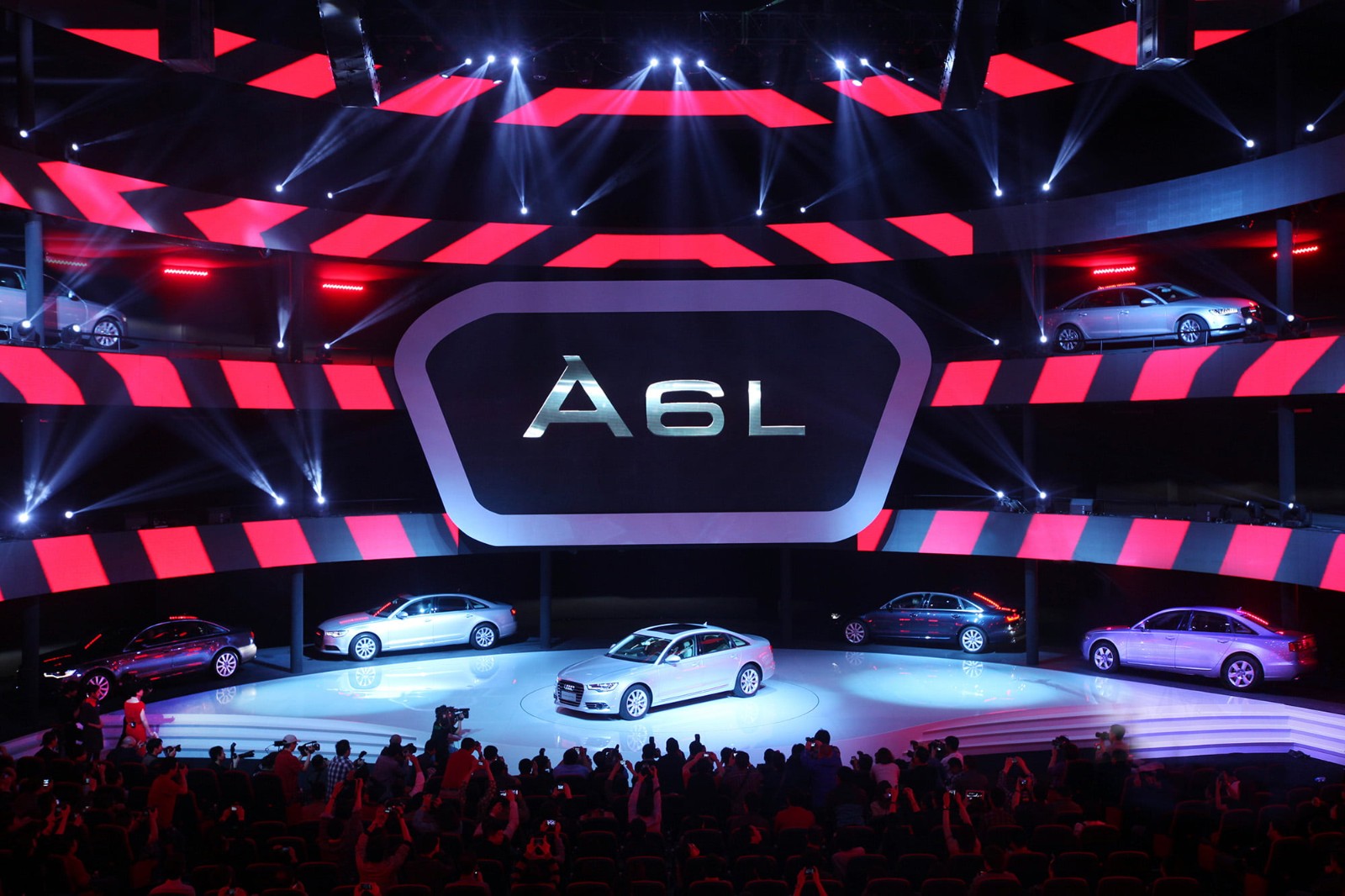 2012年3月28日,“巅峰感受”全新奥迪A6L上市庆典在广州国际体育演艺中心隆重举行。选择在外观上与2011法兰克福国际车展奥迪展馆极为相似的广州国际体育演艺中心作为活动场地,并将其打造成为独一无二的“AUDI A6L ARENA“四层环形舞台,配合炫目的灯光和环形LED效果以及与奥迪A6L前脸形状相吻合的大屏幕,震撼力十足!用空中飞人演绎全新奥迪A6L的产品技术亮点,配合360度环绕LED,生动体现出科技感、未来感。于三层环形舞台呈现的立体车舞,令人目不瑕接,展现出全新奥迪A6L澎湃的动力性和完美的操控性。伴随着空中飞人的精彩表演和动感十足的车舞,全新奥迪A6L震撼登场!孙楠和那英两位实力派唱将同台飙歌,将活动推向高潮。